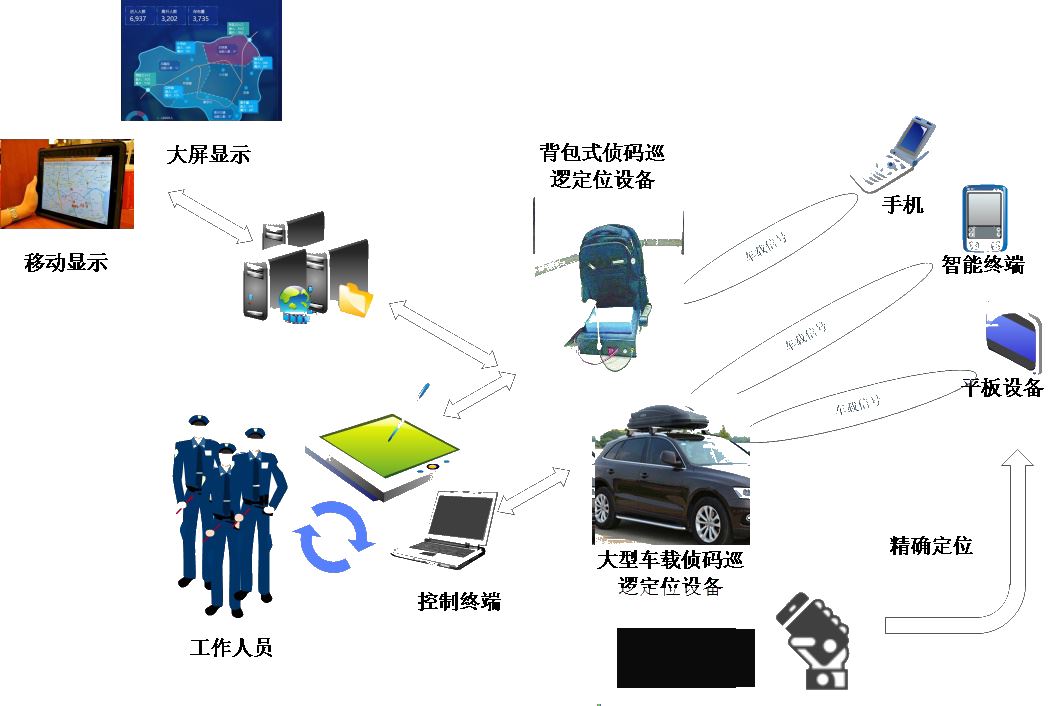 车载式,可针对中国移动,联通,电信2G,3G,4G,全网全制式手机目标,主动搜寻范围内目标手机信号,确定目标嫌疑人手机位置,通过信号源数值显示的结果,不断缩小搜索范围,通过手持单兵信号检测仪器进入建筑物内,小范围搜索,精确定位目标嫌疑人。